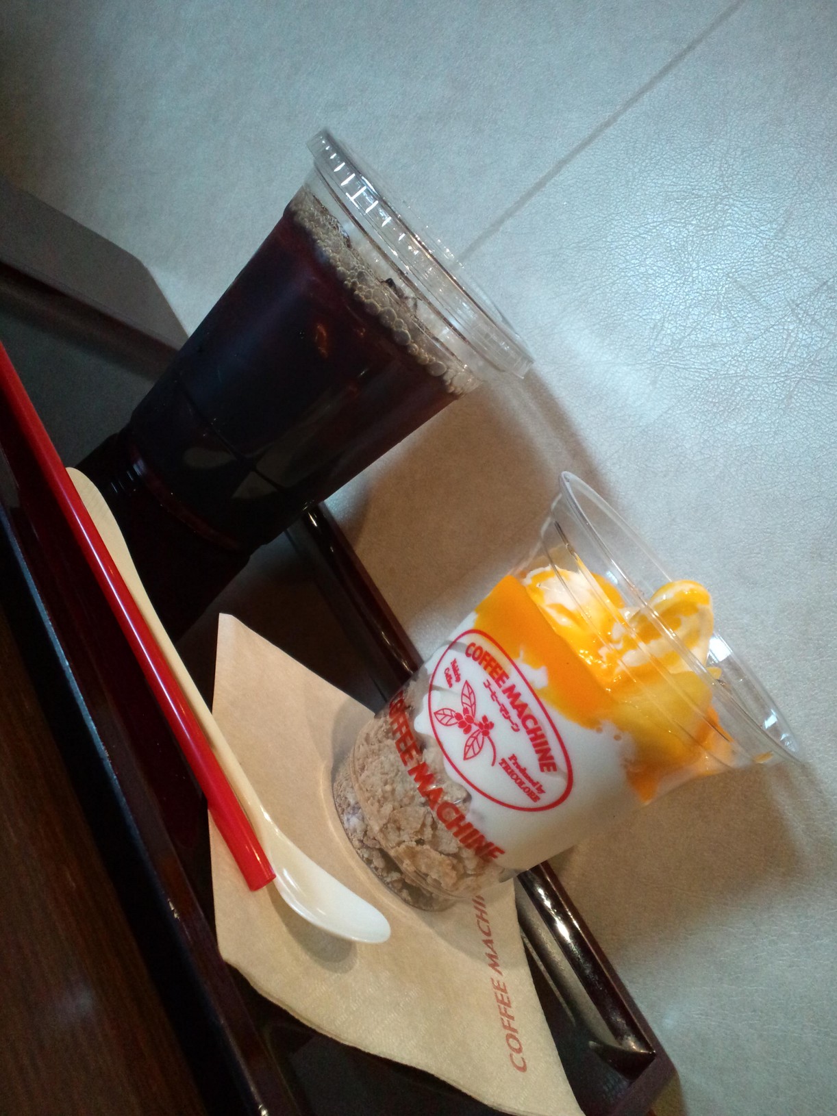 コンビニで調達したティラミスを食べ